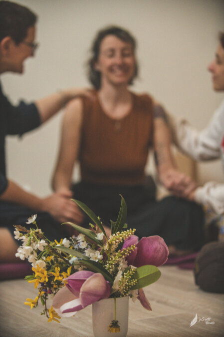 Dans le travail collectif, il permet de réguler le système nerveux, d’éviter la surcharge émotionnelle, de soutenir l’intégration après les prises de conscience. Les pratiques corporelles proposées sont simples, accessibles, adaptées à un cadre de groupe Elles ne visent pas la performance, mais la présence, l’ancrage et la capacité à rester en lien avec ce qui se traverse.